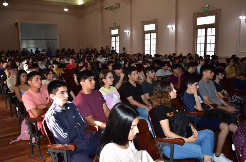 “Las carreras que dicta la Facultad exigen mucha abstracción, pero cada uno de ustedes está aquí porque tiene vocación y yo, como decana, me comprometo y transmito el compromiso de docentes y no docentes, que vamos a trabajar arduamente para que cada uno logre su objetivo hasta que nos volvamos a encontrar en esta Aula Magna para entregarles el título”, expresó.