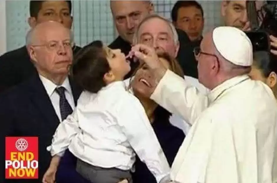En febrero de 2016, durante su visita a México, el Papa participó en una jornada de vacunación como parte de la campaña internacional "End Polio Now", que impulsa Rotary. En esa oportunidad, aplicó personalmente una dosis de vacuna oral a un niño, en una acción simbólica que formó parte de un evento que reunió a rotarios de América.