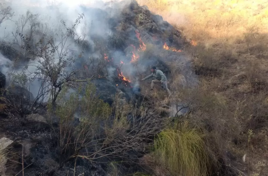 Desde la madrugada los bomberos se encuentran en las zonas de difícil acceso junto a baquianos y policías, para mitigar el fuego que dejará sin dudas grandes pérdidas para el medio ambiente flora y fauna, para el ganado vacuno y equino que se encuentran en estas épocas del año en las altas cumbres.