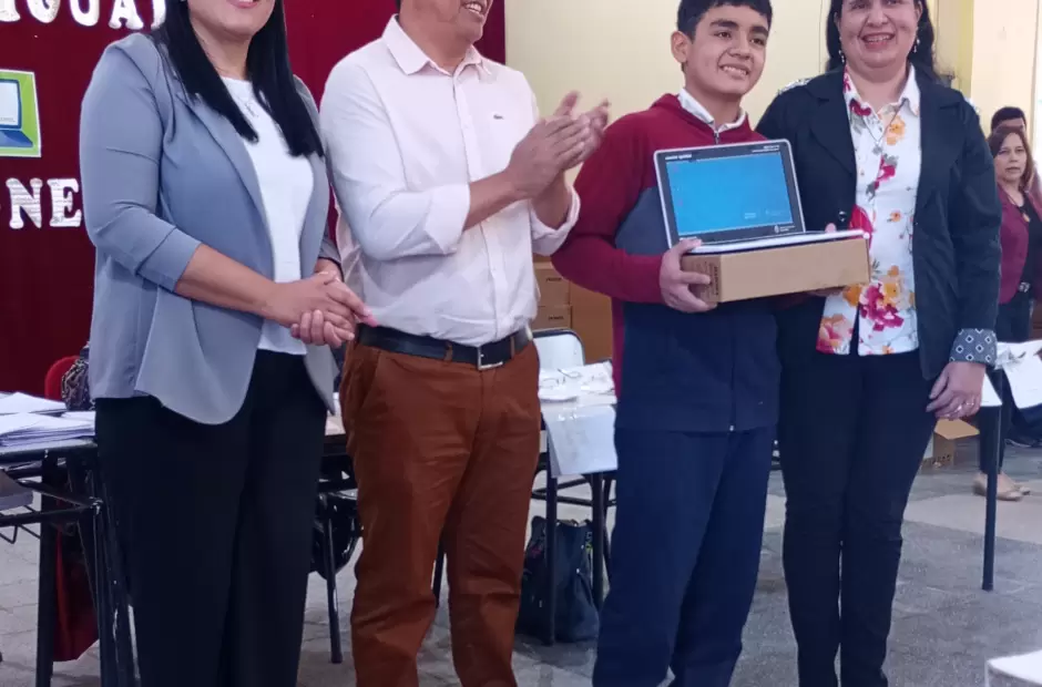 En esta ocasión, la directora de Educación a Distancia, Natalia Varela, junto al supervisor de zona, Rodolfo Mansilla y la directora de la escuela secundaria, Silvina Romero, efectivizaron la entrega de 235 computadoras, destinadas a los alumnos que cursan sus estudios en 1° y 2° año. Al momento de hacer uso de la palabra, la directora Romero agradeció al Ministerio de Educación y a su titular, Andrea Centurión por las herramientas digitales que acompañarán a los estudiantes durante su paso por el nivel secundario.