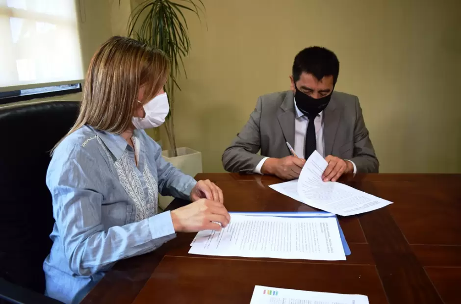El ministro de Educación, Francisco Gordillo junto a la intendenta de Valle Viejo, Susana Zenteno firmaron hoy un convenio de cooperación institucional para la implementación del Programa de Intervención Socioeducativa en Apoyo Escolar, que forma parte del recientemente lanzado "Plan Estratégico de Continuidad Pedagógica 20/21". En la oportunidad, el titular de la cartera educativa estuvo acompañado por la directora de Políticas Alimentarias, Paola Orellana.