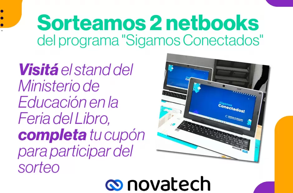 “Estamos muy contentos junto al Ministerio de Cultura, Turismo y Deporte y a la Secretaría de Gestión Cultural de poder darle esta noticia al público, a la comunidad educativa, que gracias al apoyo de la empresa Novatech vamos a sortear dos netbooks educativas entre todos los docentes y alumnos que visiten nuestro stand. Así que invitamos a todos los chicos/as, jóvenes y docentes que se acerquen a buscar su cupón y depositarlo en la urna”, expresó la titular de la cartera educativa.