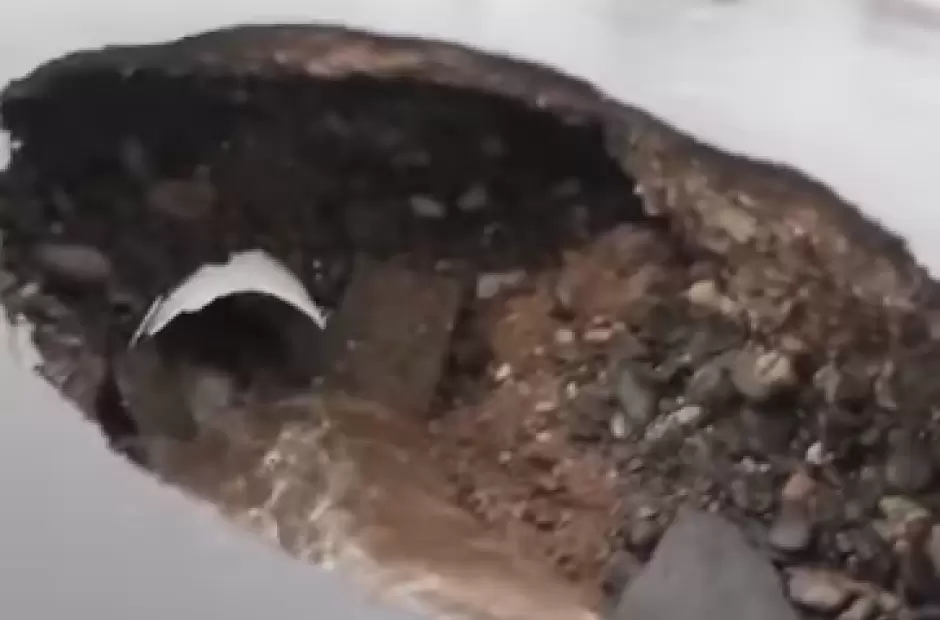 Los vecinos de la zona sur dan fe de esto, por cuanto promediando la mañana alertaron al personal de la Comisaría Sexta sobre el hundimiento del pavimento, lo que provocó que se abriera un cráter de proporción, el que permite confirmar la rotura de un caño madre de agua.