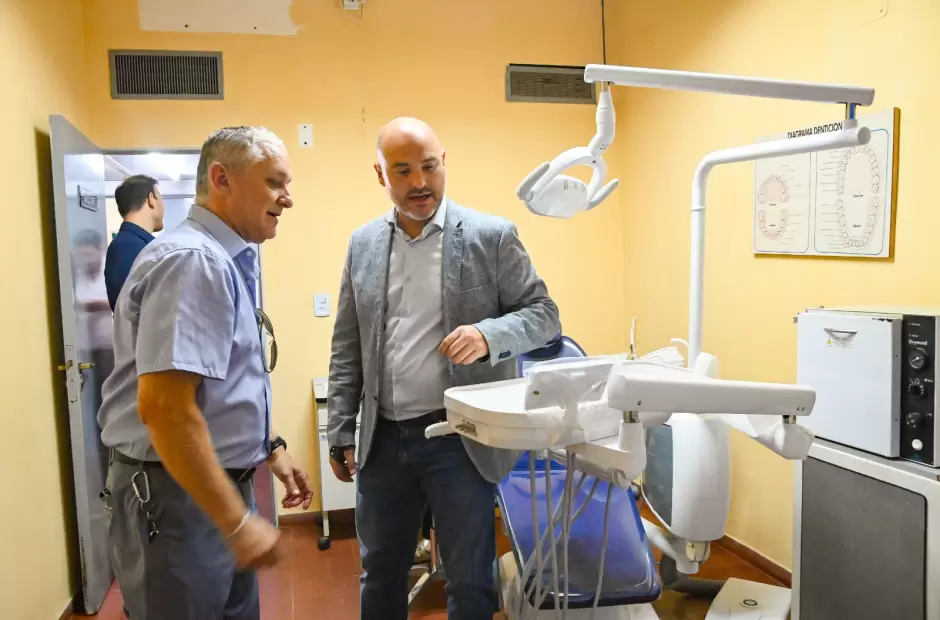 En el marco del Plan Integral de Salud Pública, el Ministro de Salud, Lucas Zampieri, junto al Director de Odontología, Guillermo Barrionuevo, visitaron el Centro Interzonal de Odontología (CIO), ubicado en el Hospital San Juan Bautista, donde se inició la instalación de nuevos sillones odontológicos, compresores y equipos de rayos X destinados a mejorar la respuesta del servicio.