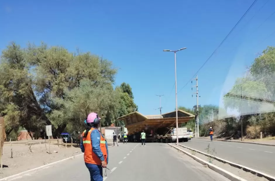 Catamarca. El convoy que transporta equipos mineros especiales avanza más lento de lo previsto, debido a las dificultades para evitar el tendido eléctrico.