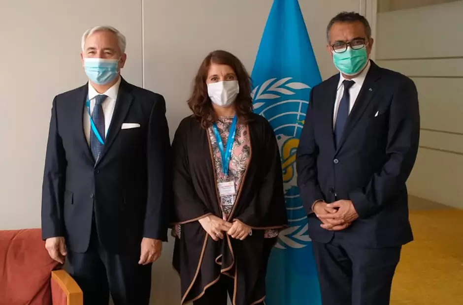 En la reunión estuvieron presentes también el embajador argentino, Federico Villegas; la delegada de la misión permanente ante la OMS, Jimena Schiaffino, y la directora de Relaciones Internacionales del Ministerio de Salud de la Nación, Carla Moretti.