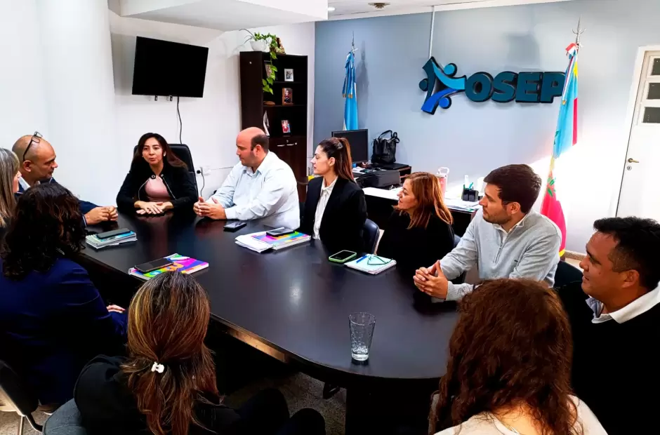La ministra de Salud, Johana Carrizo, encabezó este lunes una reunión con el director de la Obra Social de los Empleados Públicos (OSEP), Leopoldo Marchetti, y su equipo de gestión, en su visita a la Casa Central de la institución.