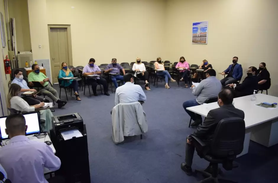 En el Salón Auditorio del Ministerio de Educación en la mañana de hoy, la referente de cartera educativa Andrea Centurión y su par el ministro de Trabajo y Recursos Humanos Ariel Luna, acompañados por el secretario de Planeamiento Educativo Gustavo Soto recibieron a los representantes gremiales Jorge Molas y Mario Sánchez de ATECa, Sergio Guillamondegui y Mariana Ventrice de SIDCa, Nancy Agüero y María Vega Cativa de UDA, Claudia Besada y Adriana Silvina Paz de SADOP, y Andrea Sánchez de SUTECa, en el marco de la primera audiencia de conciliación obligatoria.