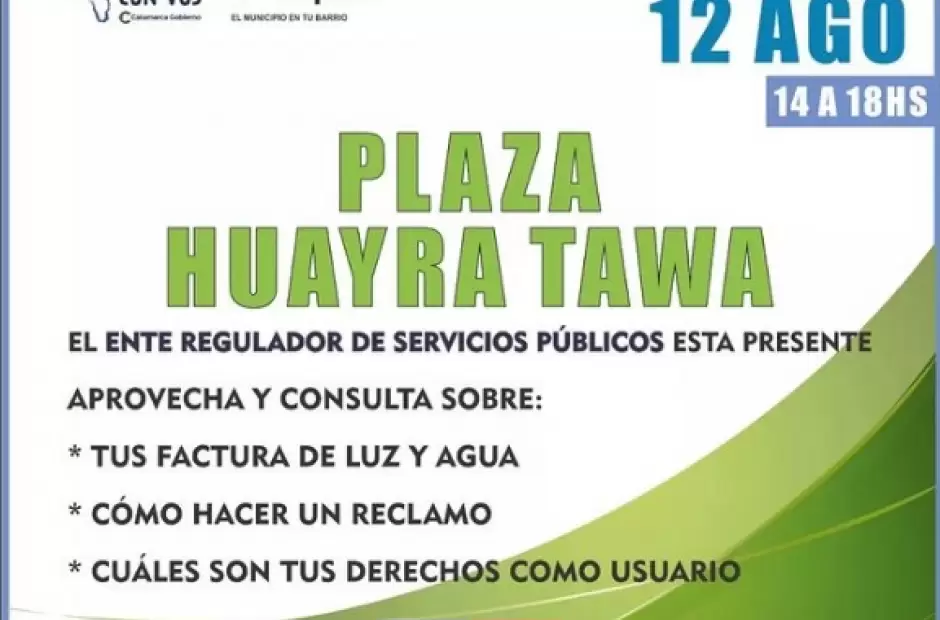 Sumándonos a la iniciativa impulsada por el Gobierno de la Provincia y el Municipio de la Capital de acercar el Estado a todos los ciudadanos, el Ente Regulador de Servicios Públicos estará presente en los programas “Catamarca con vos” y “Municipio en tu barrio”.