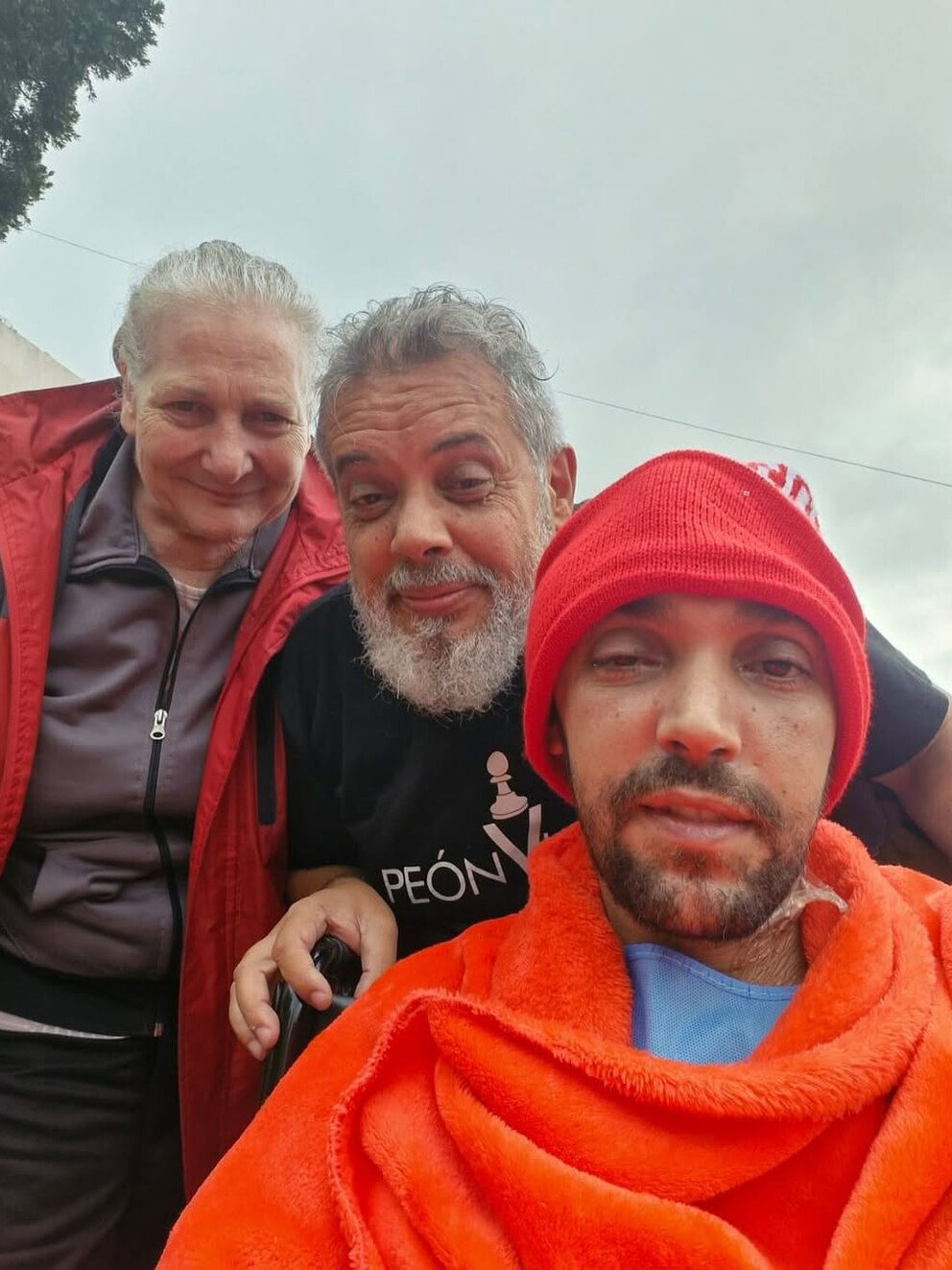 El posteo incluye varias fotos, en las cuales se puede ver al joven junto a dos enfermeros, saludando a la gente desde allí, y con un gorro de Independiente, el club del cual es simpatizante.