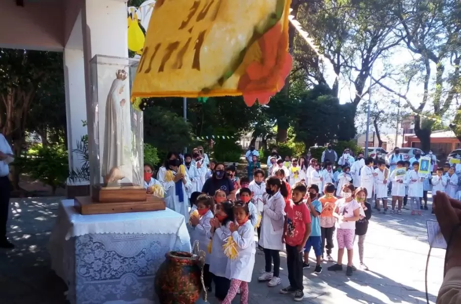 El lunes 8 de noviembre, en horas de la mañana, la comunidad educativa del Hogar Escuela Fray Mamerto Esquiú vivió una fiesta con la llegada de la imagen peregrina de la Virgen de Fátima, dando inicio a la visita en la parroquia San Antonio de Padua, ciudad capital.