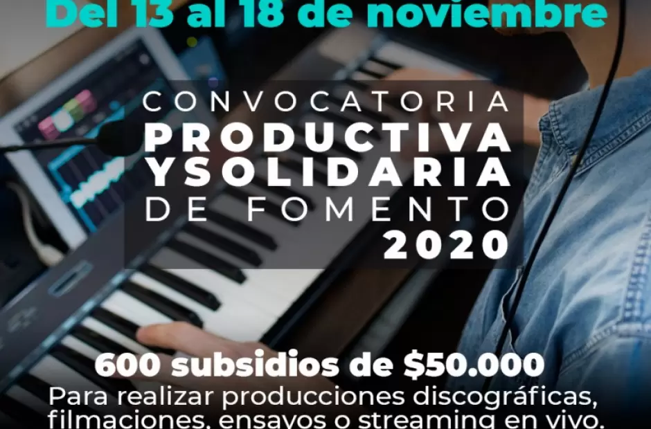 Concretamente, la iniciativa apunta a poner a disposición un total de seiscientos subsidios de 50.000 pesos para que grupos y solistas puedan materializar proyectos de grabaciones, filmaciones, ensayos y/o streaming en vivo, donde intervengan, además de músicos, otras personas que trabajan en la asistencia técnica de la producción.