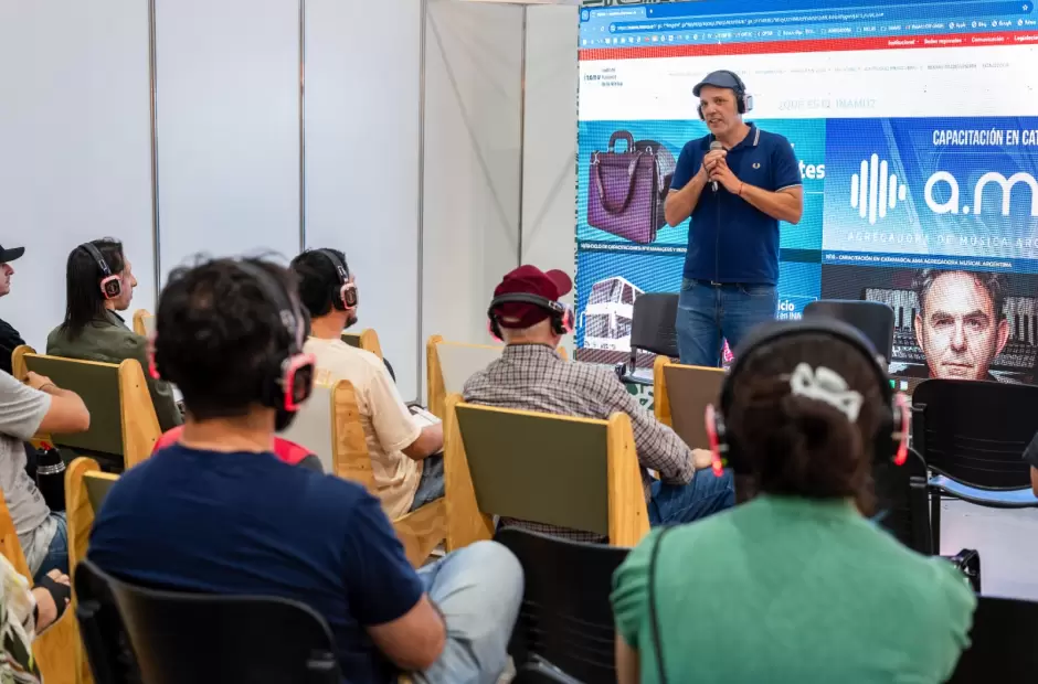 Durante la tercera jornada de la 16° Feria del Libro, en el auditorio 2 del pabellón Peregrina Zárate, el presidente de INAMU, Bernabé "Buco" Cantlon brindó una charla para adentrarse y capacitar a músicos locales sobre el uso de la herramienta AMA, la primera distribuidora de música digital pública en el mundo.