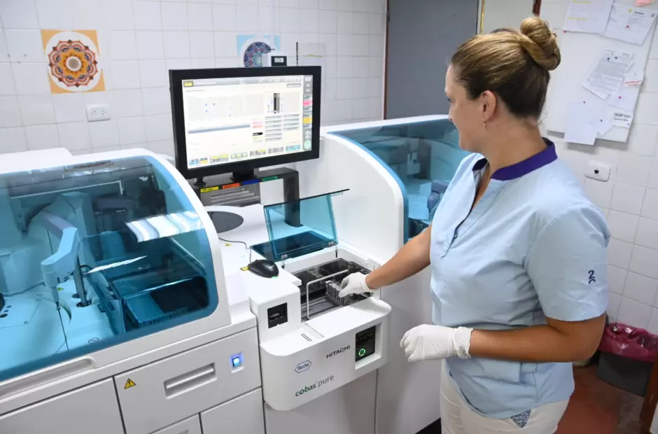 El Laboratorio Central cuenta con un equipo Cobas Pure de Roche, de última tecnología, el primero instalado en el servicio de salud pública de la región. Además, es importante destacar que son pocos los equipos de este tipo en funcionamiento en el país.