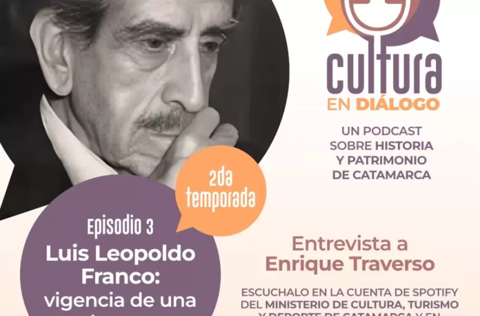 La segunda temporada del ciclo de podcast Cultura en Diálogo, producido por la Dirección Provincial de Patrimonio y Museos del Ministerio de Cultura, Turismo y Deporte de Catamarca, presenta su tercer episodio con un homenaje al escritor Luis Leopoldo Franco, figura central de la literatura catamarqueña y uno de los intelectuales más relevantes del siglo XX argentino.
