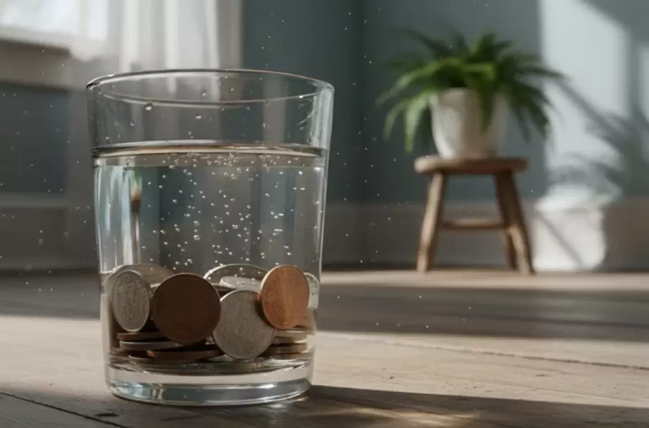 Para qué sirve dejar un vaso de agua con monedas