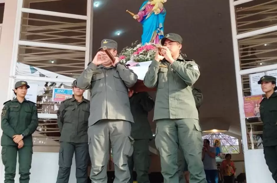 Los actos litúrgicos se iniciaron con la procesión llevando la imagen de la Santa Patrona, que fue portada en andas por personal de Gendarmería Nacional. La columna de fieles partió desde calle Avellaneda continuando por Avda. Gobernador Galíndez, Pedro Goyena, Gobernador Ruzo, Villegas, Samuel Molina y Pedro Goyena regresando al templo.
