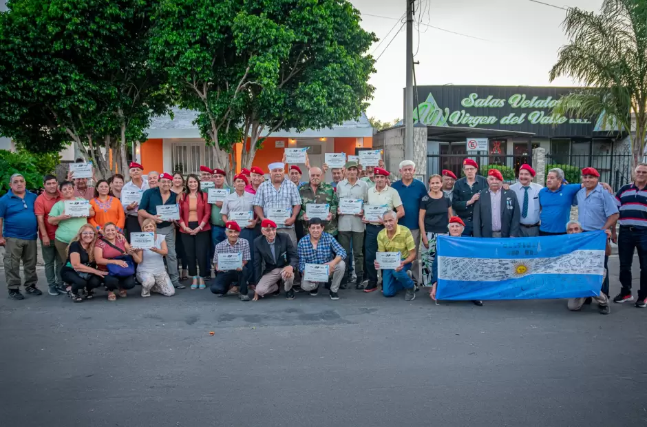 La Intendenta Alejandra Benavidez homenajeó a miembros de la Agrupación 7 de Abril, vecinos del departamento Fray Mamerto Esquiú, quienes recibieron la distinción "A los Hombres de Fray que lucharon por la Patria" rememorando su participación durante la gesta de Malvinas.