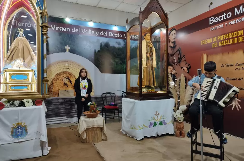 La presentación se realizó en el ingreso al Pabellón de Turismo del Predio Ferial Catamarca, donde se encuentran las sagradas imágenes, con el acompañamiento del público, que premió con aplausos la propuesta musical con acordeón y el canto de esta promesa catamarqueña de 12 años de edad.