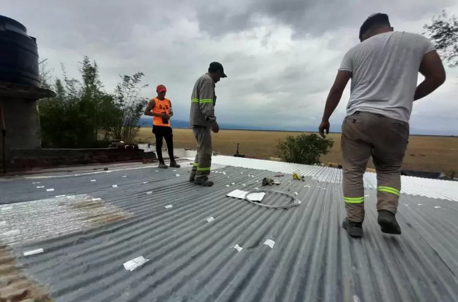 En la jornada de este jueves, se comenzó con el personal del municipio a techar las viviendas afectadas con el material correspondiente, para que los vecinos afectadas puedan volver a habitar sus viviendas. La cartera de Desarrollo Social asisitió con insumos necesarios como agua, colchones, camas e indumentaria.