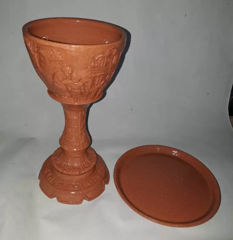 Sobre el proceso de elaboración de estas obras artesanales, su autora comentó que en la parte previa hubo una etapa de investigación, en cuanto al significado, cánones y estilos de los cálices, para así comenzar a bocetar y definir la forma, respetando cada una de las partes propias del cáliz. Luego vino la preparación y el acondicionamiento de la arcilla roja característica de esta zona, para iniciar la forma de la pieza en el torno alfarero. Una vez lograda la misma y luego de hornearse, fue necesario retornear, para así definir y estilizar las formas.