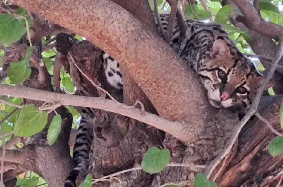En el lugar, los uniformados, conjuntamente con personal de Defensa Civil, capturaron un ocelote que estaba trepado a un árbol de la zona.