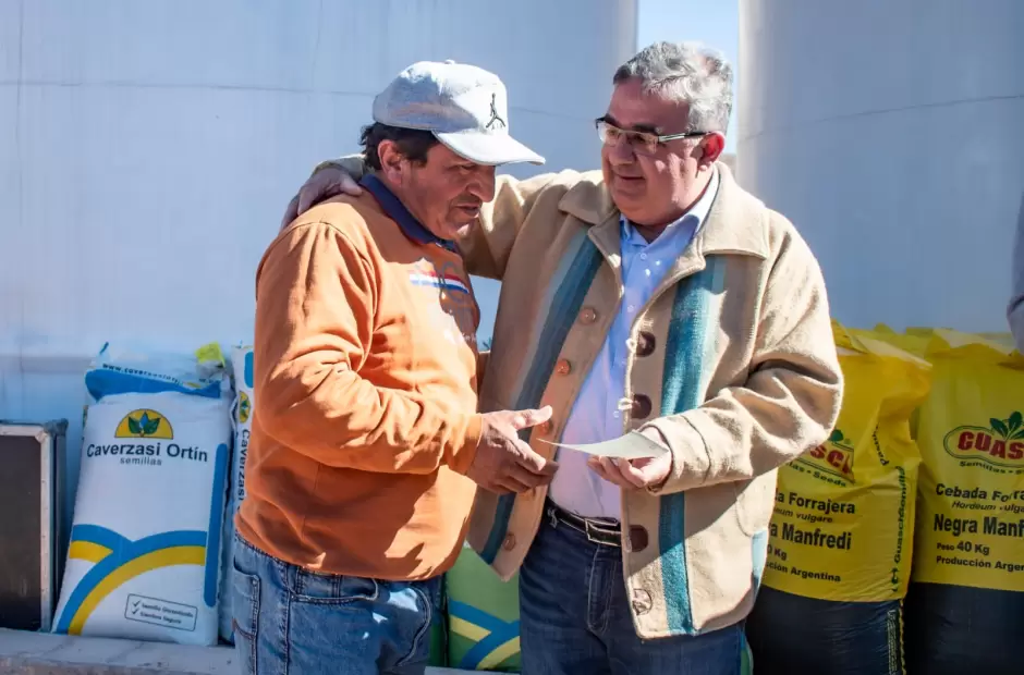 La entrega se efectuó en Bodega La Indómita y constó de un aporte de más de $2 millones de pesos para los productores afectados. Además, se entregaron 9 toneladas de maíz para conformar un fondo rotatorio en Fiambalá y más de 500 kilos de semillas alfa cebada para sembrar a productores tinogasteños.