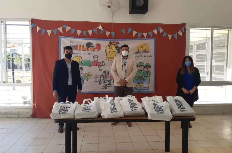 La entrega consistió en kits escolares, guardapolvos, registros de asistencia, cajas de tizas de colores, cajas de tizas blancas, cuadernos oficios A4 y resmas para todos los alumnos y alumnas de estos dos establecimientos educativos que ya se preparan para la vuelta a clases presenciales.