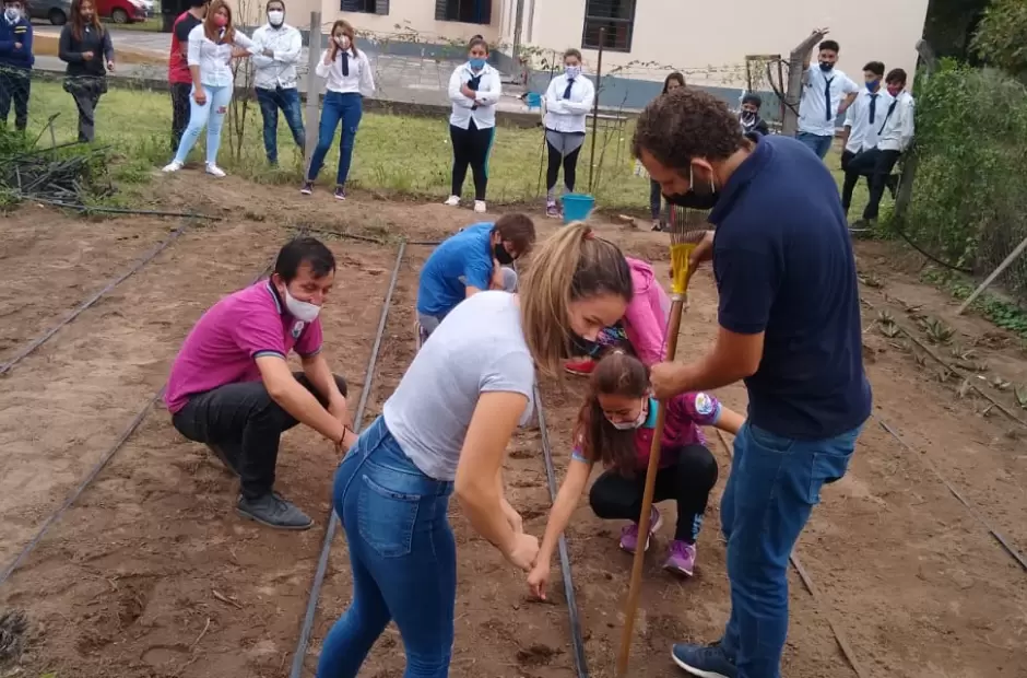 En tanto, en el departamento La Paz, alumnos y docentes de la Escuela Rural N° 16 de La Dorada, del Anexo l denominado “El Aybal” están llevando a cabo trabajos de acondicionamiento del suelo para siembra y mantenimiento en la huerta escolar.