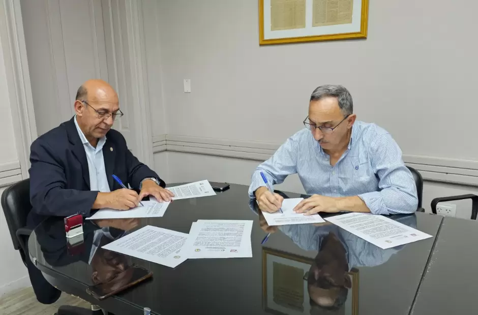 El decano de la Facultad de Tecnología y Ciencias Aplicadas de UNCA, Carlos Savio y Edgar Gutiérrez, en representación de Cantera Los Zárates SAS, firmaron un convenio para que la estudiante de la carrera de Arquitectura, Brisa Montalván realice en dicha empresa la Práctica Profesional Supervisada(PPS).