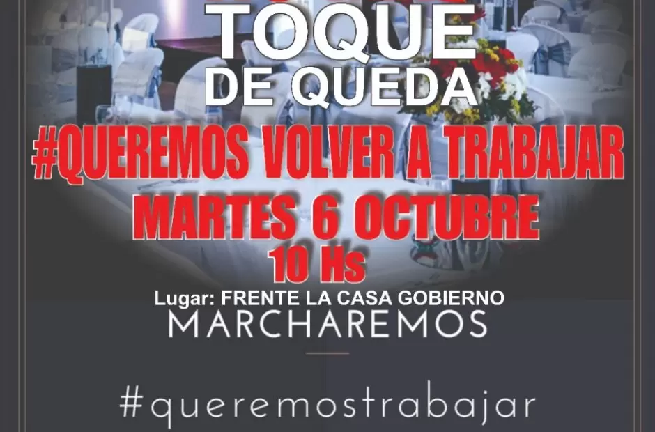 La crisis económica, que está generando la cuarentena, sigue sumando sectores que reclaman volver a trabajar. Ahora, son los trabajadores de salones de eventos y afines, quienes reclaman la reapertura de su actividad. Vía redes sociales anunciaron que se movilizarán mañana martes a las 10.00, frente a Casa de Gobierno.