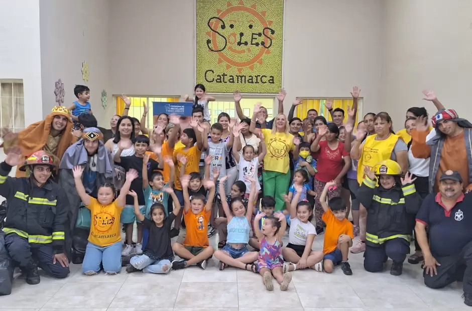 Más de 150 chicos, de entre un mes y 17 años, recibieron la visita de los Reyes Magos Bomberos que tuvo como protagonista a una dotación especial del cuartel de Bomberos Voluntarios de Valle Viejo.