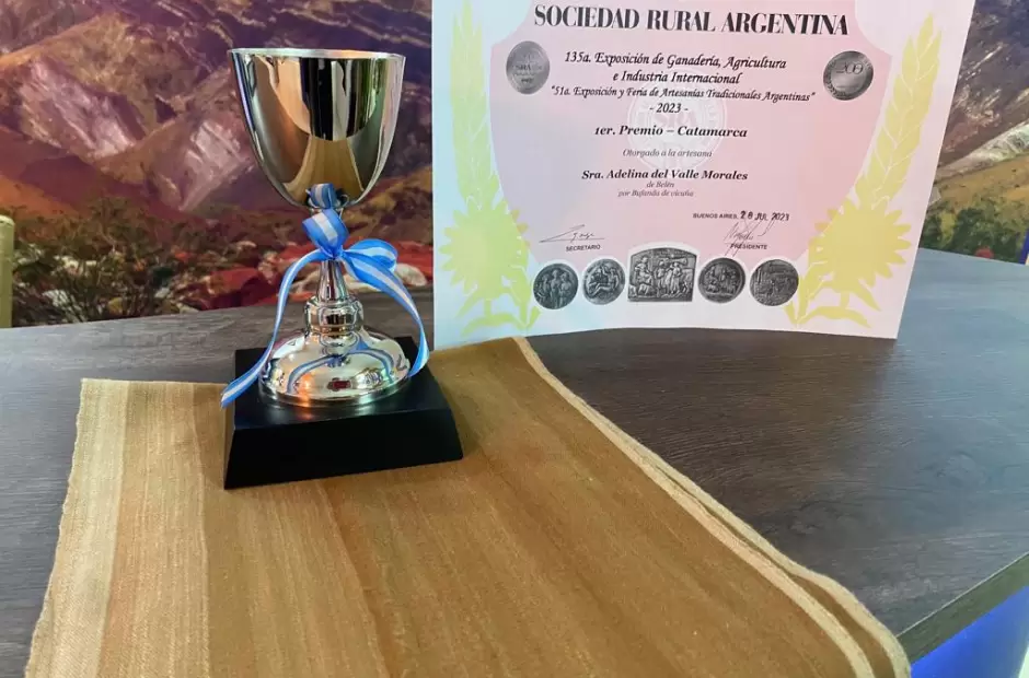 Nuevamente y para revalidar la calidad del trabajo de los artesanos y artesanos catamarqueños, se confirmó que, en la Expo Rural, que está en instancia de entrega de premios y galardones, el 1° premio en artesanías fue para Adelina del Valle Morales, artesana reconocida del departamento Belén.