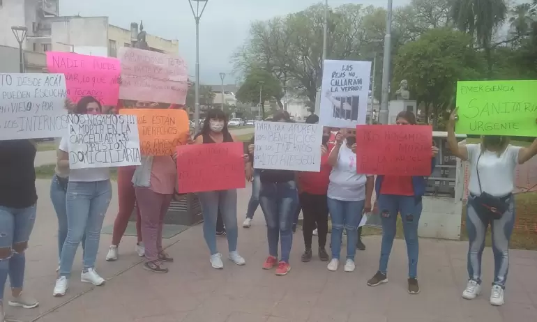 El Paseo de la Fe fue el escenario donde un grupo autoconvocado de familiares de internos del Servicio Penitenciario provincial reclamaron esta mañana, frente a Casa de Gobierno, por los malos tratos y la represión por parte de las autoridades contra los detenidos.
