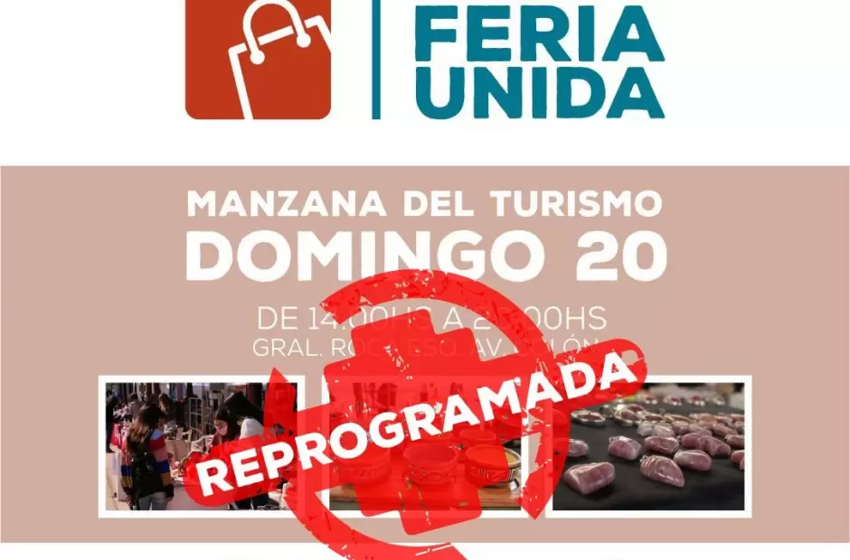 Por el retorno a fase 1 se comunica que la edición de septiembre de la Feria Unida -programada para este domingo 20 de septiembre- se suspende y posterga a una nueva fecha, que oportunamente se comunicará conforme autorización del COE y evolución de la situación sanitaria.
