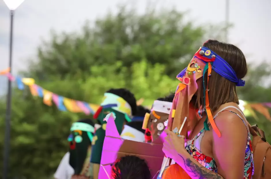 Ayer domingo, la jornada comenzó con el Taller de Máscaras a cargo de Carolina Paradela, en el que adolescentes y adultos aprendieron a realizar este típico elemento al estilo de los disfraces del carnaval andino. De esta manera, usando telas recicladas, hilos, lanas, lentejuelas, botones y bordados tridimensionales, evocaron en sus creaciones a los carnavales de Mutquín. "En realidad este tipo de comparsas vinieron desde Perú y llegaron en los años 60 a Mutquín", explicó la docente y artista plástica reconocida en el medio. "A este tipo de comparsas las integran varones y entonces generalmente son ellos los que elaboran sus propios disfraces, reciclando material. Aquí vinieron a participar chicas y chicos así que estoy muy contenta porque es también una forma de recuperar una tradición" agregó. Nazarena Merlo y Guillermina Sosa, madre e hija respectivamente, participaron de la iniciativa y se mostraron muy conformes con la misma: "la verdad que yo nunca hice costurería así que todo fue muy lindo, la profe nos ayudó, fue muy copada, me gustó como quedó la máscara", señaló la adolescente.