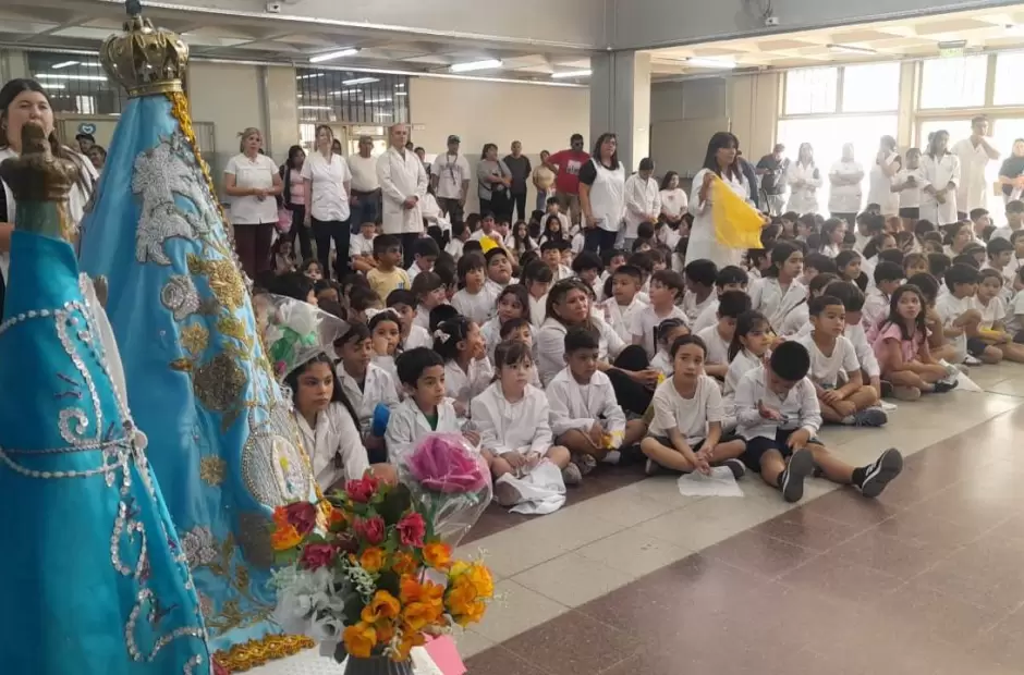 En un clima de fiesta total, fue recibida por alumnos, docentes, directivos y demás personal, quienes la homenajearon con canciones y elevaron plegarias a Dios por su intercesión maternal.