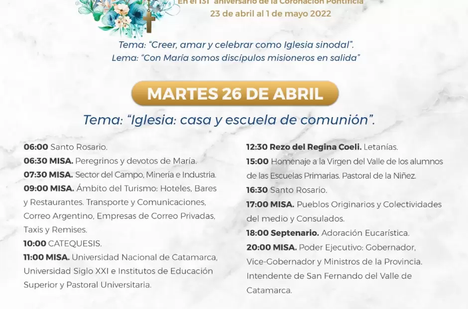 11:00 MISA. Universidad Nacional de Catamarca, Universidad Siglo XXI e Institutos de Educación Superior y Pastoral Universitaria.
