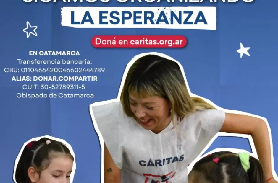 Como cada año, Cáritas Argentina convoca a la sociedad a participar de su Colecta Anual, la que se realiza desde ayer sábado y culmina este domingo en parroquias, capillas y espacios comunitarios de todo el país. Bajo el lema "Sigamos organizando la esperanza", la campaña busca reunir aportes económicos para sostener, durante todo el año, los programas de asistencia, promoción y desarrollo humano que la organización lleva adelante en las comunidades más vulnerables del país.