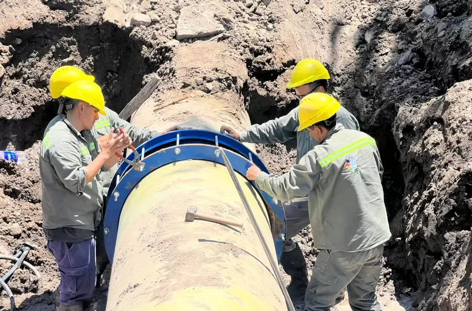 Finalizó la reparación de cañería de 900 mm PRFV que afectó el servicio en la zona de Banda de Varela y alrededores.