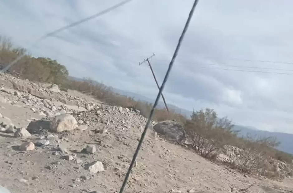 Varios postes del tendido eléctrico colapsaron camino a Punta del Agua y otros quedaron suspendidos por los cables, según informó Radio Valle Viejo.