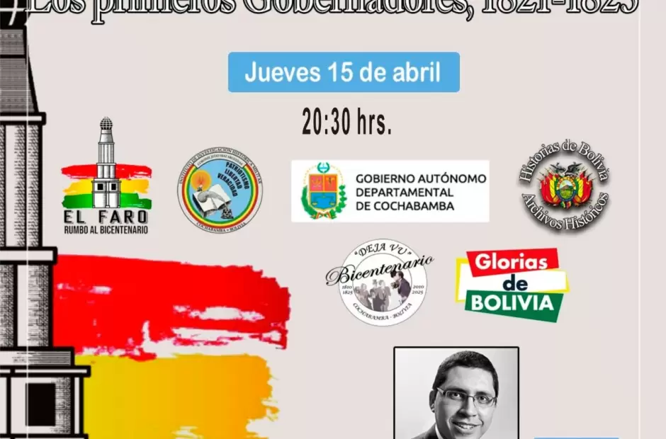 La exposición será vía zoom y está organizada por El Faro-Rumbo al Bicentenario, con el auspicio del Instituto de Investigación Histórica Militar “Coronel Julio Díaz Arguedas” y al Gobierno Autónomo Departamental de Cochabamba (Bolivia).