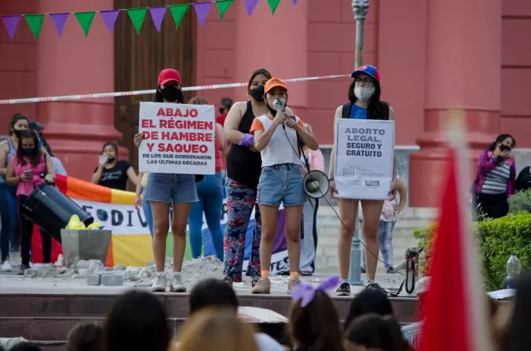 Alrededor de las 18.15 diferentes organizaciones se reunieron con bombos, carteles y banderas para decir "Basta de violencia" y pedir justicia por los femicidios ocurridos en nuestra provincia.
