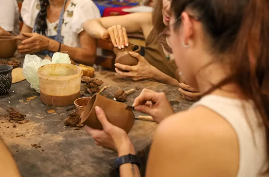 Uno de los grandes atractivos que tuvo la Feria de Artesanías y Diseño durante este fin de semana, fueron los talleres artesanales que se llevaron a cabo en la Casa de la Puna. Uno de ellos fue el taller sobre “Elaboración de Vaso Condorhuasi de uso ritual”, a cargo de Mao Olmedo (Esc. de Artesanías) que tuvo una muy buena cantidad de participantes que experimentaron la propuesta.