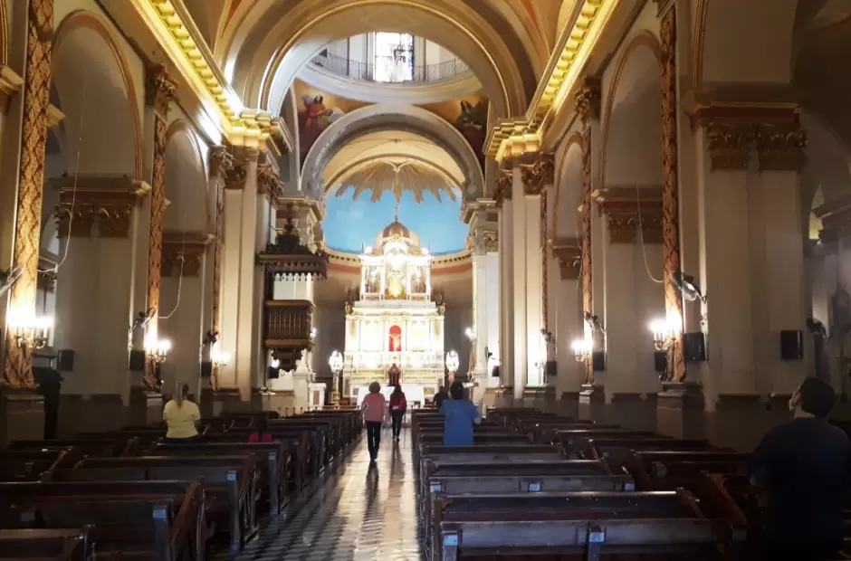 Entre las medidas establecidas, no podrá haber más de dos personas por banco, siempre con barbijos, que sólo podrán quitárselo en el momento de la Comunión.