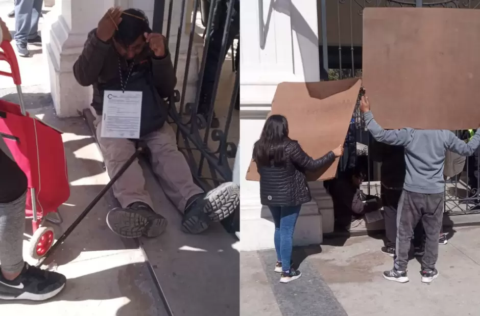 Hombre con discapacidad que pide trabajo se desmayó en el Palacio Municipal y manifestantes lo asistieron