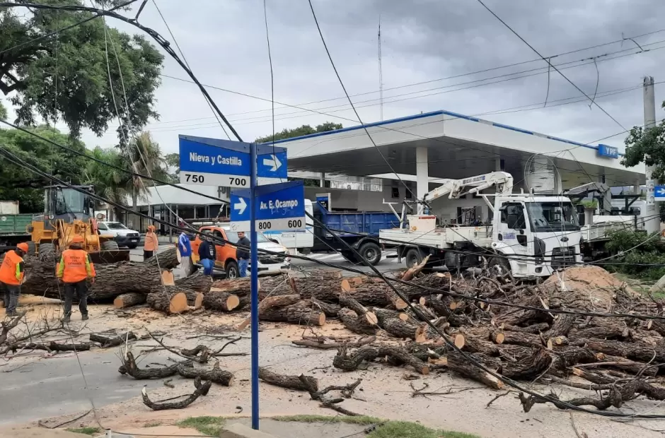En las labores de auxilio en un primer momento actuó personal de Incendios Forestales, Defensa Civil y trabajadores de la Municipalidad de la Capital, quienes se abocaron a retirar los árboles de gran porte que fueron afectados.
