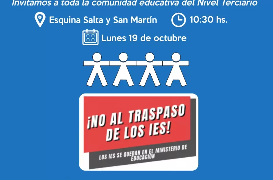 La medida es en rechazo a la iniciativa del gobernador Raúl Jalil, donde se contempla el traspaso de los Institutos de Educación Superior del Ministerio de Educación al Ministerio de Ciencia y Técnica. Esta decisión del Ejecutivo es seriamente rechazada por varios sectores educativos y como manifiestan los organizadores de este abrazo simbólico, el traslado "haría perder a los profesores su status de docentes".