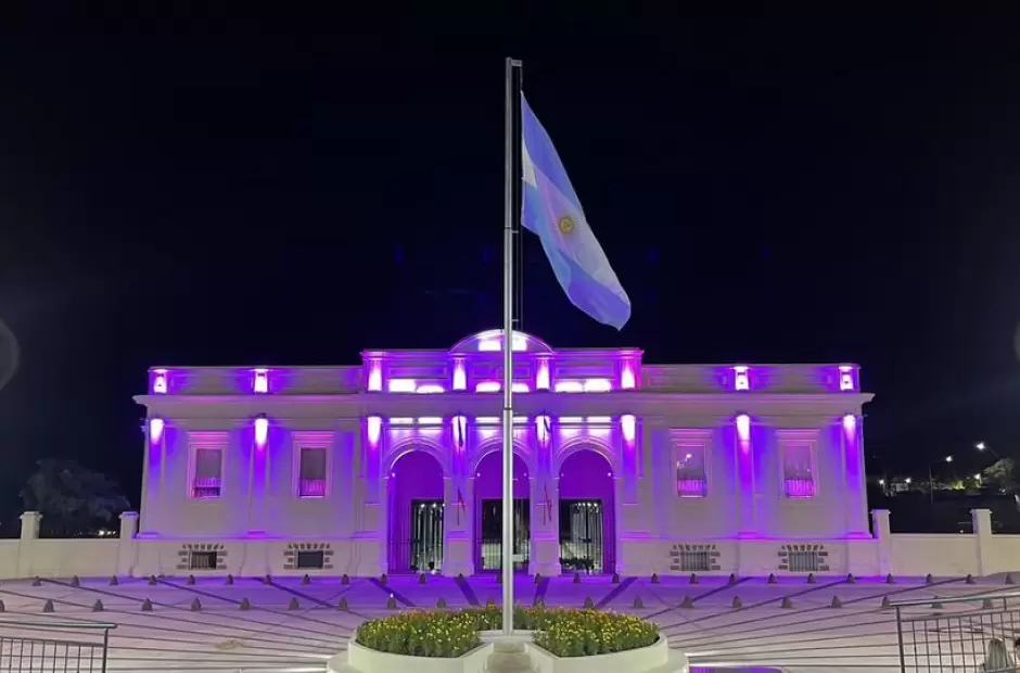 El cartel identificatorio de Casa de Gobierno permanecerá durante toda la semana iluminado de color rojo en apoyo y adhesión a las actividades durante el mes de marzo revalorizando el rol de las mujeres en la sociedad.