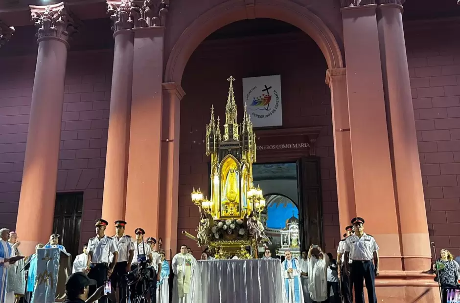 La procesión avanzó por Camilo Melet, Mariano Moreno, San Martín y Rivadavia hasta llegar al Paseo de la Fe, frente a la Catedral Basílica de Nuestra Señora del Valle, donde se concretó el encuentro final entre la Virgen y los fieles.